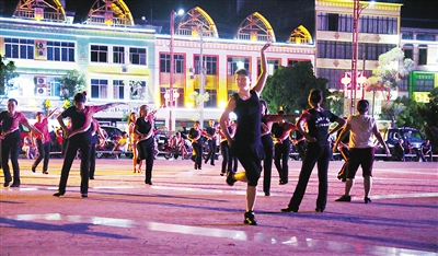 夜幕低垂,空阔寂寥的三月三广场人声渐浓,逐渐喧哗。银发老人翩翩起舞间,不仅是对筋骨的舒展,更是一种融入山水的享受。