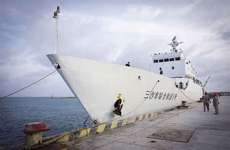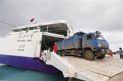 | 2015年1月5日,“三沙一号”交通补给船首航三沙市永兴岛,这是三沙建市后新建的第一艘大型交通补给船。 |