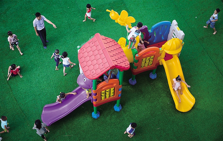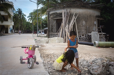 2015年5月26日,三沙市永兴岛,两个孩子在玩耍,在2015年12月前,三沙市没有学校。 |
