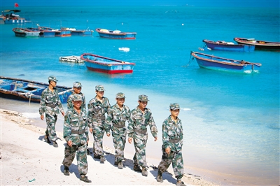 2015年7月2日,三沙市赵述岛,民兵正在进行日常巡护。 |