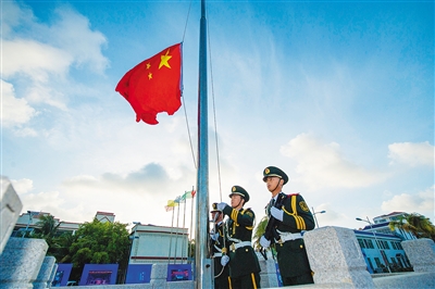 | 主权三沙建设稳步推进。国旗高扬在南海之上。 |