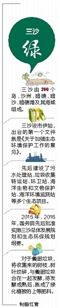 三沙设市后动工的第一个项目和出台的第一份文件,都与生态保护相关,并花了两个月时间出台了生态环保的6大方面、12大举措,力求建设与生态环保同步。