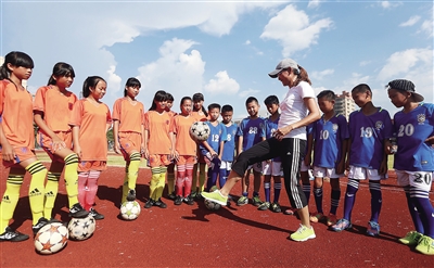 近年来,海口市龙华区大力发展校园足球。去年,该区投入200万元用于校园足球发展。目前全区39所学校中,已有6所学校组建校园足球队,14所学校正在组建。今年5月底,海口市龙华区教育局与海南韦海英足球俱乐部启动校园足球合作,联手足球名将韦海英推进校园足球。合作中,双方将开展校园足球培训、足球课堂教学、协助组建足球队,特别注重女子校园足球队组建,促使龙华区校园足球活动进一步普及。本报记者 张杰 通讯员 莫巨兴 摄