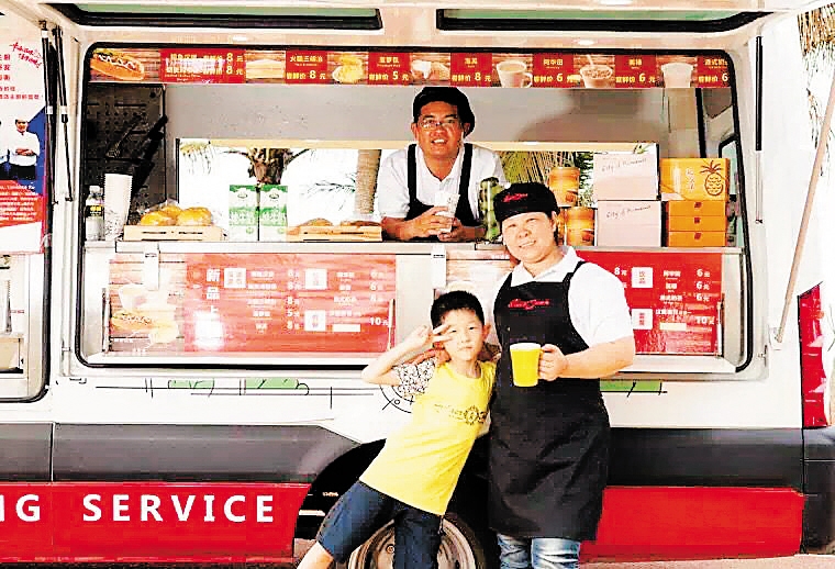 22年前,出生在海口的詹夏莉与来自台湾的丈夫相恋结婚,从此辗转在国内外多个城市。2014年,詹夏莉和丈夫决定定居海南。随着海口“双创”的展开,很多流动小吃摊贩都被取缔了,很多上班族和学生族的早餐成了问题。詹夏莉灵机一动,“何不把在台湾以及西方城市流行的移动餐车复制到海口来呢?”想法虽好,但做起来却麻烦得不得了。