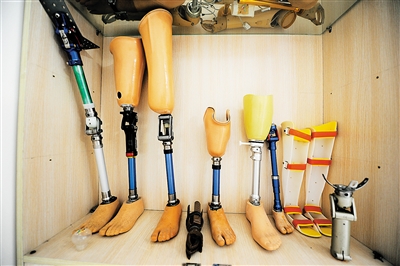在海南省残疾人康复指导中心一个不起眼的车间里,常年都有数百副正在制作的假肢,四处堆放着腿部造型的假肢零部件,会令初来者感到畏惧,工作人员笑称他们这里可是海南最大的“造假车间”,但“这里造假,是为了弥补缺憾”。