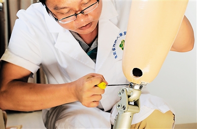 省残疾人康复指导中心负责全省大部分的假肢矫形器的制作与装配,假肢制作师王春被残疾人朋友称为 “老百姓认可的造假工程师”。