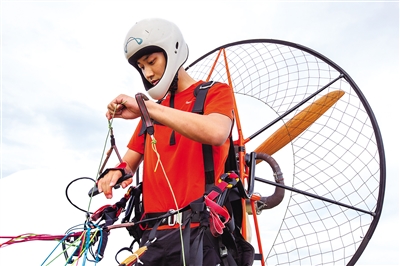 “在天上,伞是你唯一可以依赖的朋友。我现在每次滑翔前,在家里都要提前拜伞。”赵俞铭提醒说,玩滑翔伞最好是几个伞友约着一起。飞前要仔细检查设备,操作一定要规范。“新鸟”要跟着“老鸟”飞,并且每个人要带上对讲机,有危险随时呼救。