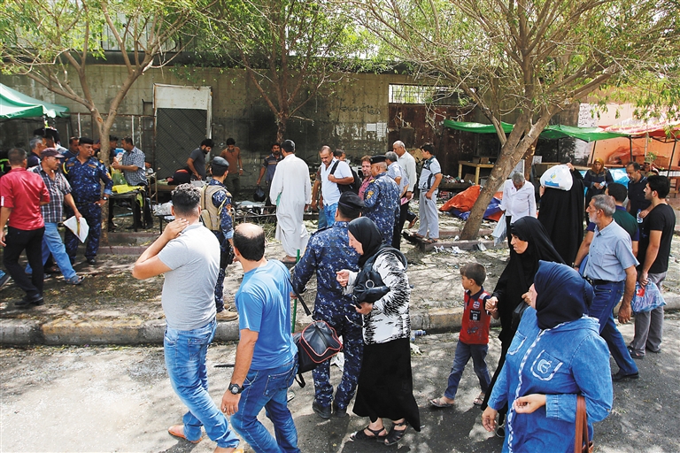7月24日,在伊拉克首都巴格达,人们聚集在袭击现场。当天上午,巴格达发生自杀式爆炸袭击事件,至少14人在袭击中丧生,另有20人受伤。 新华社/路透