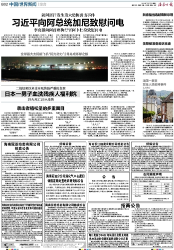 海南日报 中国/世界新闻综合 010 2016-07-271 2016年07月27日 星期三