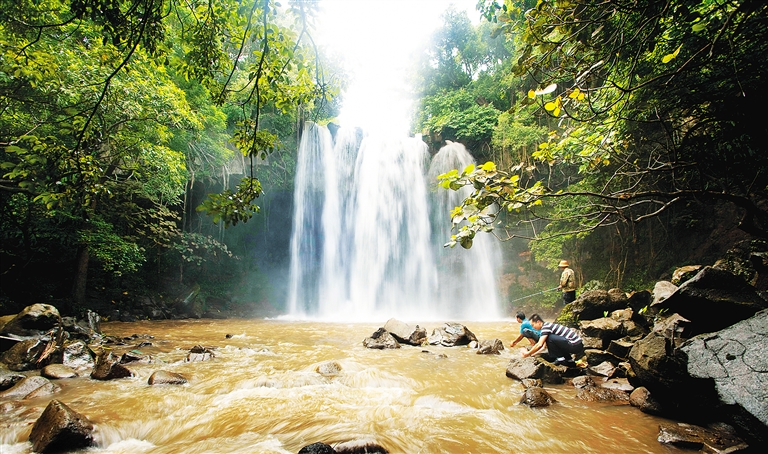 这里有气贯如虹的“古银瀑布”,位于临高县皇桐镇居仁村,平川落差所至,高20余米,幅面20米,幅宽400多平方米,瀑布从悬崖经洞壁飞泻而下,似烟如雾,美不胜收;