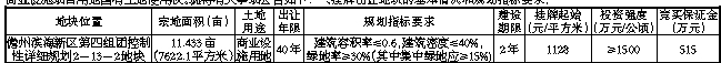 二、申请人资格:(一)中华人民共和国境内、外的法人、自然人或其他组织均可报名参加竞买(除法律、法规另有规定的除外),申请参加竞买者须提出书面竞买申请,并提供《竞买须知》中要求提供的相关文件。本次挂牌不接受联合体竞买。(二)具有下列行为之一的,不得参加本次土地挂牌竞买:1.在儋州市范围内有拖欠土地出让金行为,至今尚未付清的;2.在儋州市有闲置土地、违法利用农村集体土地建设商品住房、擅自改变土地用途等违法行为,并未及时纠正的。(三)竞买人具备申请条件并按规定缴纳足额竞买保证金的,在规定的时间内确认其竞买资格,签发挂牌资格确认书。三、本次国有建设用地使用权以现状挂牌出让,按照“价高者得”的原则确定竞得人。四、申请人可于2016年7月29日至2016年8月25日到儋州市国土资源局或海南省政务服务中心二楼省公共资源交易中心22号窗口查询和获取挂牌出让文件。五、申请人可于2016年7月29日至2016年8月25日到儋州市国土资源局或海南省政务服务中心二楼省公共资源交易中心22号窗口提交书面申请。交纳竞买保证金的截止时间为2016年8月25日下午17时(以保证金实际到账为准)。经审查,申请人按规定交纳竞买保证金,具备申请条件的,我局将在2016年8月25日下午17前确认其竞买资格。六、本次国有土地使用权挂牌活动在海南省政府会展楼二楼省公共资源交易服务中心土地交易厅进行。地块挂牌时间为:2016年8月18日上午8:30至2016年8月30日上午10:00。七、其他需要公告的事项。(一)本次挂牌出让不接受竞买人电话、邮寄、电子邮件及口头等方式申请及报价,不接受联合竞买。(二)受理报名、报价时间:上午8:30至11:30,下午14:30至17:00,节假日除外。(三)本次挂牌出让事项如有变更,届时以变更为准。八、联系方式。联系地址:儋州市中兴大道儋州市国土资源局。联系电话: 0898-23883393 65303602。联系人:郭先生。查询网址:http://www.ggzy.hi.gov.cn;http://www.landchina.com