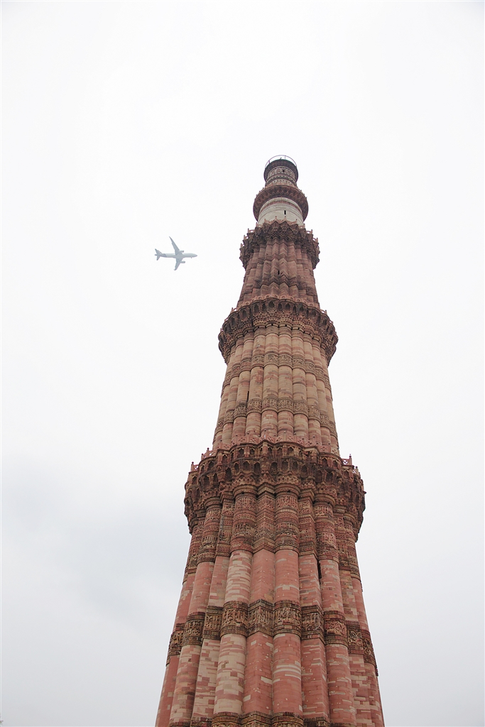 古老传统和现代文明的融合,在新德里随处可见。宽敞的“国家大道”上,矗立着高度近50米的印度门,周边是中亚细亚风格的圆盘状国会大厦和建有大面积娱乐、健身设施的公园;街头巷尾,汽车、打表计费的小型出租“嘟嘟车”、老式马车来回穿梭,路面上还能看到牛、猴子等动物在悠闲漫步;五颜六色的现代楼群中,坐落着古都布塔等历史遗迹和不同风格的寺庙。