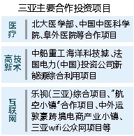 据了解,本次北京招商活动,三亚签约的项目主要集中在高新技术、互联网、医疗等领域,主要合作投资项目有:北大医学部、中国中医科学院、阜外医院等合作项目和中船重工海洋科技城、法国电力(中国)投资公司新能源综合利用项目、乐视(三亚)综合项目、“航空小镇”合作项目、中外运敦豪跨境电商产业小镇、三亚wifi公众网项目等。