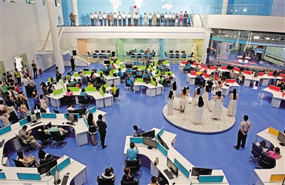 作为海南广播电影电视传媒集团有限公司的一个重要节目生产制作中心,全新的新闻演播室集群也于今日正式启用。据相关负责人介绍,该演播室集群自2015年初开始筹备,经过建筑搭建、设备安装等阶段,于今年5月完成整体构建,除了拥有传统演播室功能外,还增加了从存储、处理再到播出的全高清系统,与此同时,系统还可与新媒体高度融合。整个演播室集群可同时容纳123名编辑同时在线。