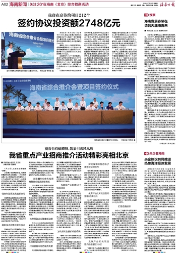 第002版:海南新闻关注2016海南(北京)综合招商活动