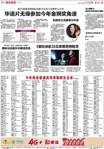 海南日报 娱乐新闻综合 012 2016-07-301 2016年07月30日 星期六