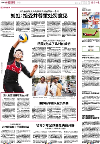海南日报 体育新闻综合 006 2016-07-311 2016年07月31日 星期日