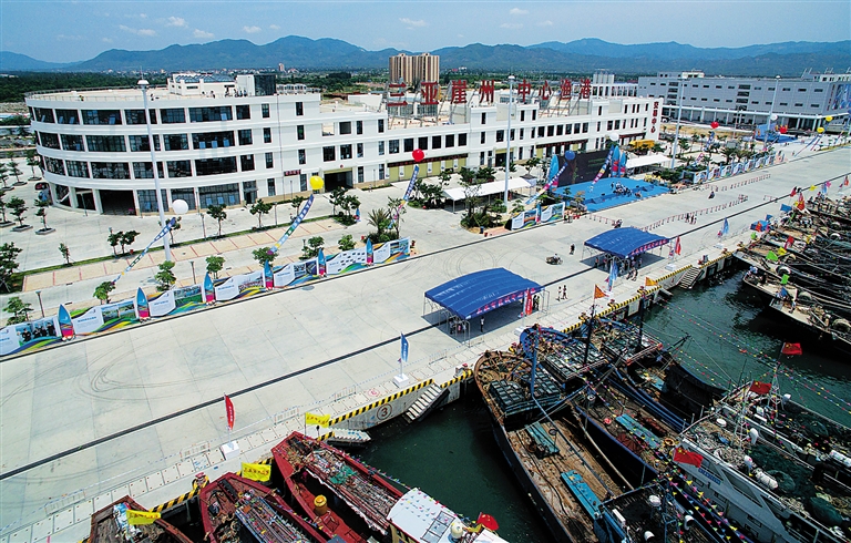 700亩的水面可停靠大小船舶800艘,交易中心一楼的57个冰鲜档口已全部承租,供销商纷纷入驻,首批两栋共188套保障性住房已经交付钥匙,保障了部分渔民、渔企员工的先行搬入,而垃圾中转站、渔港综合楼、消防站等配套项目也已开始施工,预计2016年底可全部完工。