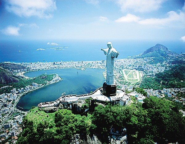 里约热内卢基督像落成于1931年,总高38米,体积庞大,有1145吨重,左右手的指间距达到了23米。雕像中的耶稣基督身着长袍,双臂平举,深情地俯瞰山下里约热内卢市的美丽全景。耶稣像面向着碧波荡漾的大西洋,张开着的双臂从远处望去,就像一个巨大的十字架,显得庄重、威严。无论白天还是夜晚,从市内的大部分地区都能看到基督像,也使得它成为巴西名城里约热内卢最著名的标志。