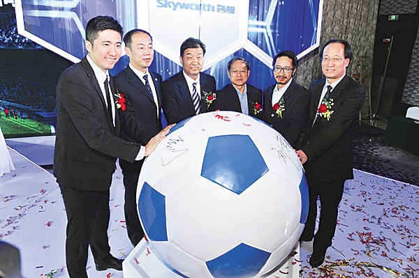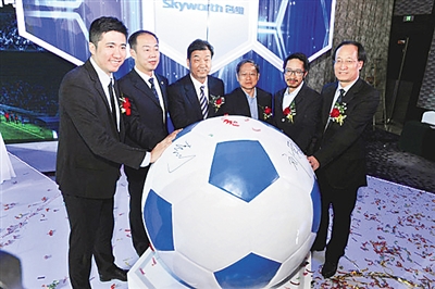 在足球上,创维与中国足球国家队的赞助签约仪式。促成两者走到一起的动力是其共同的目标——走向世界。