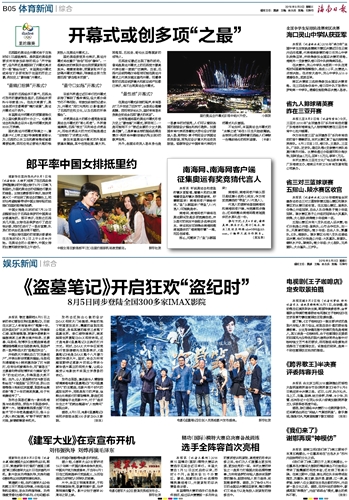 海南日报 体育新闻 娱乐新闻 017 2016-08-031 2016年08月03日 星期三
