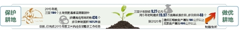 严格耕地保护,收获有形硕果;严守耕地红线,三亚还摘得了不少无形果实:该市2015年度土地卫片违法占用耕地面积比例保持在较低水平;通过开展卫片执法工作,不仅加强了该市对政府公共项目的引导力度,积极化解项目落地时间紧和审批周期长的矛盾,还促进提高城市土地管理水平,助力城市“双修”“双城”工作。