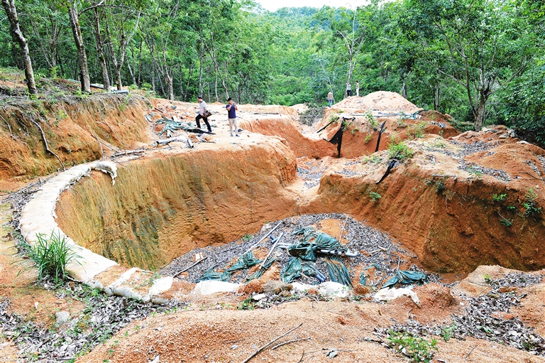 据了解,非法采矿区所在的山头属于中平镇大坡村丁架坡村小组,这是一个苗族村庄,地处琼中、琼海、屯昌3个市县的交界处,很偏僻,人烟稀少。“与琼中2700多平方公里的面积相比,琼中国土部门巡查人员太少,力量薄弱,管理起来有现实困难。”琼中县国土环境资源局监察大队大队长陈辉宁说。