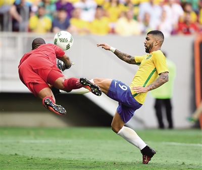 ➡ 南非门将伊·库内(左)在比赛中扑救。 新华社发