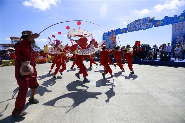 祭龙王、拜海神、龙狮起舞、鱼灯摇曳,丰富多彩的传统祭海仪式活动,再现了600年前潭门渔民出海时的豪情,也将这一文化在传承的同时传播。