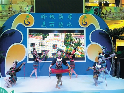 作为城市形象的组成部分,陵水民族歌舞团就是一张城市文化名片。推介会上,演员们身着黎族服装,表演了开场舞《鼻箫舞韵》,悠扬的鼻箫伴奏,优美的舞姿,赢得了嘉宾们热烈的掌声,给展会带来了人气。