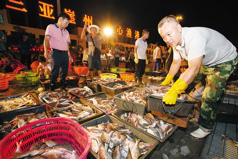 据悉,自8月1日南海伏季休渔结束,渔民们经过6天的出海捕鱼作业,三亚崖州中心渔港迎来首个收购高峰期,渔船内装满了来自南海的新鲜渔货,鱿鱼、带鱼、小红鱼、扒皮鱼等。截至7日,新渔港已完成107.5万斤的渔获交易量。