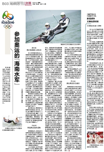 | 海南日报 封面 015 2016-08-081 2016年08月08日 星期一 |