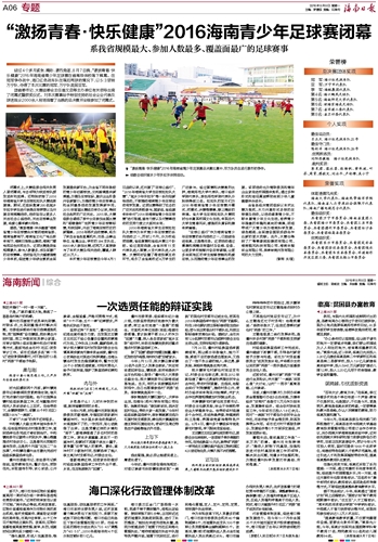 | 海南日报 专题 006 2016-08-081 2016年08月08日 星期一 |