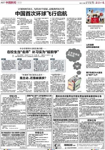 海南日报 中国新闻综合 007 2016-08-081 2016年08月08日 星期一