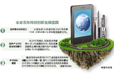 值得关注的是,多项指标在未来五年将翻番或有重大跃升。比如,通过《专利合作条约》(PCT)提交的专利申请量比2015年翻一番;每万人口发明专利拥有量由2015年6.3件增至12件;全国技术合同成交金额由2015年的9835亿元增至20000亿元。