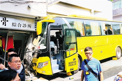 8月8日下午,一旅游巴士于澳门半岛同安街包公庙附近撞进路边建筑物,该事故已造成32名内地游客受伤。由于涉嫌危险驾驶,肇事司机已被警方拘捕。新华社发