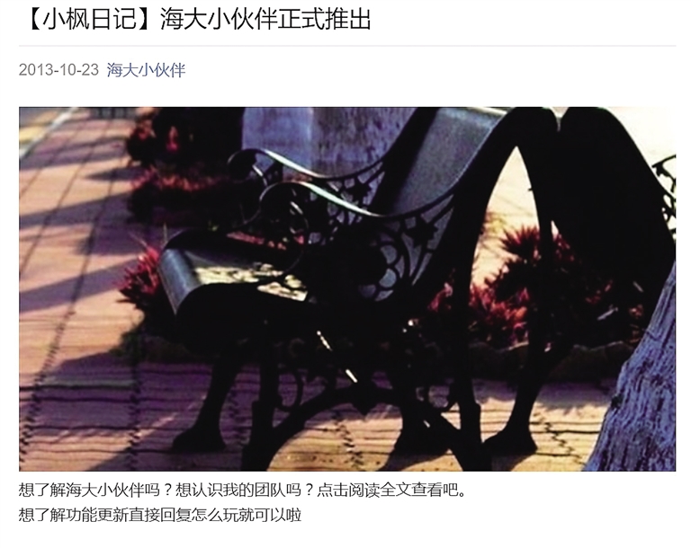 “小伙伴靠技术,技术更新比较及时。学生需要什么我们就开发什么。”说到技术开发小七底气十足。学校开始使用门户网站之后,公众号迅速将教务系统端口改为了校园门户端口,而门户网站并不是每一个学生都拥有初始密码,海大小伙伴第一时间发现了这一漏洞,并做了相关推送,指导粉丝找到自己的初始密码。海大小伙伴的功能开发秉承着“学生怎么方便怎么来”,吸引了大量海大学生的关注。“海大小伙伴有40000多个粉丝,说没有商业广告植入别人很难相信,但是我们确实没有用植入广告来赚钱。”小七告诉记者。