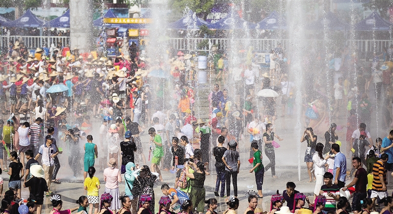 8月9日,2016年海南七仙温泉嬉水节正式开幕。上万名群众聚集在保亭黎族苗族自治县七仙广场,共享这一民族盛会。据了解,海南七仙温泉嬉水节自2000年以来已成功举办15届。本报记者 武威 摄 (相关报道见A03版)