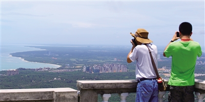 烈日当头,挡不住游客的脚步。近期,来自岛内外的游客纷纷来到文昌铜鼓岭景区饱览美景,遥望文昌航天中心。据了解,随着长征七号在文昌航天中心发射成功,以及铜鼓岭生态旅游开发区和“两桥一路”等项目建设的不断深入,目前航天特色旅游、滨海旅游等已初具规模。记者从文昌龙楼镇政府获悉,作为文昌航天中心所在地,截至8月,全镇今年接待游客30万余人次,同比增长约200%。本报记者 张茂 实习生 吴英艳 摄