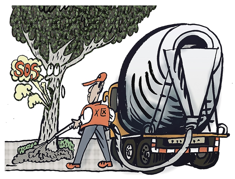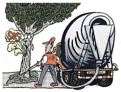 为了治理空气粉尘污染,真是什么招都想出来了。用水泥灌树,看似省事了,实则荒唐至极,一方面,城市空气粉尘来源颇多,相比于汽车尾气、渣土车、建筑工地等污染源,树根部位的粉尘污染真是微乎其微;另一方面,作为城市绿化的重要部分,树木有其成长规律,也需要生长空间,强行用水泥灌树,影响树木生长,不利于城市绿化的扩大、水分的涵养,易造成恶性循环。因此,水泥灌树这种奇葩招数,无疑是本末倒置,病急乱投医。这也启示我们,污染治理再重要,上级压力再大,也需要以科学的方法按规律办事,倘若只是百般应付,只做表面功夫,无疑会遭受民众唾骂。这正是: