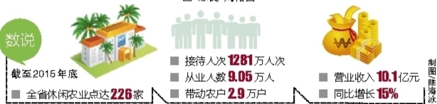 落实休闲农业政策,大力促进休闲农业发展。要加强顶层设计,积极落实农业部等11部门联合印发的《关于积极开发农业多种功能 大力促进休闲农业发展的通知》政策措施,支持有条件的市县通过盘活农村闲置房屋、集体建设用地、“四荒地”、可用林场等资产发展休闲农业和乡村旅游。力争促成将休闲农业和乡村旅游项目建设用地纳入土地利用总体规划和年度计划,实现合理安排。组织编撰2016-2025年休闲农业发展规划,将休闲农业和乡村旅游作为精准扶贫的有效形式,对在资源禀赋、人文历史、交通区位等方面有发展休闲农业优势的中部地区和贫困地区,优先扶持发展农家乐、休闲农庄、观光果园、民宿客栈、农业公园和特色民俗村等,探索社会资本参与贫困地区发展休闲农业的利益分享机制,积极拓展农业多种功能。