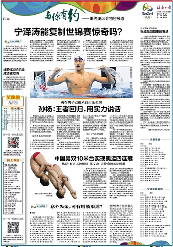 海南日报 里约奥运会特别报道 016 2016-08-101 2016年08月10日 星期三