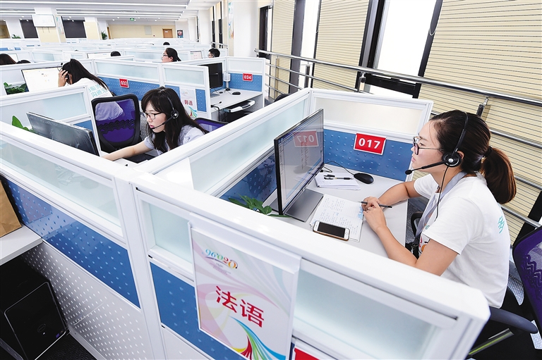 8月10日,G20峰会多语应急服务平台的翻译人员上岗接线。 当日,杭州G20峰会多语应急服务平台正式开通启用。百余名专业翻译人员通过96020热线电话,为参加峰会的各国嘉宾和媒体记者等提供14种语言的24小时咨询、翻译服务。 新华社发(李忠 摄)