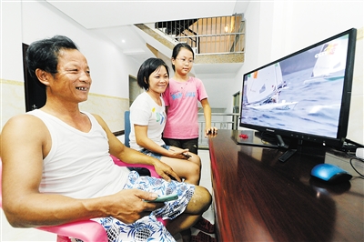 11日,女子470级帆船比赛开赛。“没到12点前就在电视前守着了,却没看到直播,好多朋友都问呢。”黄楚明笑着说,为了等女儿出场,自己家里的手机、电视、电脑全都处于待命状态,就等着赛场上出现女儿的英姿。