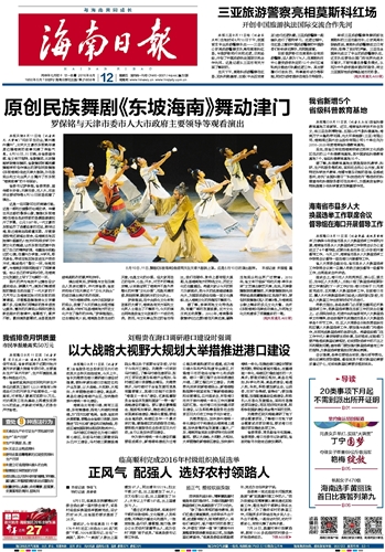 海南日报 头版 001 2016-08-121 2016年08月12日 星期五