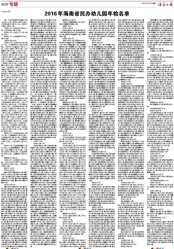 伍园小学幼儿园、伍园家家乐幼儿园、彬村山育童幼儿园、长坡镇新市场康乐幼儿园、长坡镇金童幼儿园、长坡镇新教育幼儿园、长坡镇振兴幼儿园、长坡镇凯悦幼儿园、钛矿宏欣幼儿园、福田佳家幼儿园、潭门爱心幼儿园、潭门乐乐幼儿园、塔洋群星幼儿园、塔洋智星幼儿园、塔洋粮所幼儿园、大路镇小精灵幼儿园、蔗园坡希望幼儿园、大路镇新阳光幼儿园、东红农场幼儿园、东屿岛李运强幼儿园、博鳌海滨幼儿园、博鳌镇南港群星幼儿园、博鳌镇朝阳幼儿园、朝阳福娃幼儿园、中原镇九曲星幼儿园、中原镇宝桃李幼儿园、阳江镇向阳幼儿园、阳江镇龙山幼儿园、红色希望幼儿园、会山镇馨育幼儿园、东平农场幼儿园、东太农场幼儿园、龙江镇萌芽幼儿园、龙江镇培蕾幼儿园、龙江镇龙凤幼儿园、龙江镇蓝山幼儿园、南俸农场幼儿园、石壁茗星幼儿园、石壁镇育苗幼儿园、东升农场幼儿园、大礼朵朵香幼儿园、龙阁大园幼儿园、泮水鼎盛幼儿园、温泉小晶英幼儿园、琼海市小明星幼儿园、琼海市小太阳幼儿园、琼海市银海幼儿园、琼海市乐乐幼儿园、琼海市天使城堡1号幼儿园、琼海市华侨字宝宝幼儿园、琼海市富桥幼儿园、海南软件职业技术学院幼儿园、琼海市中兴幼儿园、琼海市美得幼儿园、琼海市群星幼儿园、万泉河小红星幼儿园、琼海市小红星幼儿园