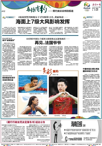 海南日报 里约奥运会特别报道 012 2016-08-131 2016年08月13日 星期六