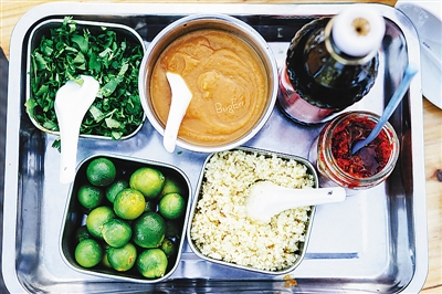 “先放一勺什锦酱打底,接着挤上两个小橘子,记住橘核一定要挑出来,然后加上蒜蓉、辣椒,最后淋上酱油,用筷子搅拌完放进嘴里一嘬,虽然每次味道都不同,但这就是海南的味道!”西安石油大学刚上大三的王娅颐,正饶有兴致地跟同学们说起海南人在外出吃饭时的必要的一道工序:制作蘸料。