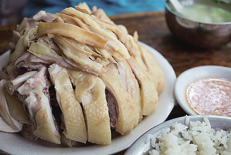 海南鸡饭虽冠名海南,但其实在海南本土众多的鸡饭店中,甚少有“海南鸡饭”这道菜,更多时候是以白切鸡饭的形式出现。但这道源自海南却扬名于东南亚的美食,其实仍旧源于海南人的乡愁。