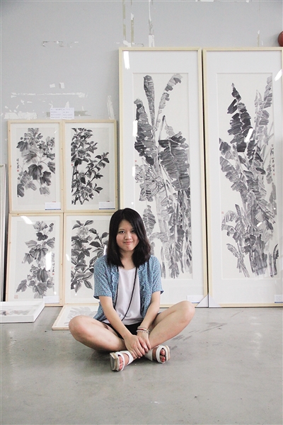 其实,相较于写意画,工笔画精致华美、装饰性强,因此也更有市场。为什么选择写意画作为未来的发展方向?黄祎天有自己的坚持:“黑和白在生宣上的组合看似简单随意,其实墨分五色,如何布局很见功底、很费心思。我对海南的喜爱,对草木的喜爱是直接的、炙热的,甚至是偏执的,只有水墨能表达这种执著而又纯粹的爱。”